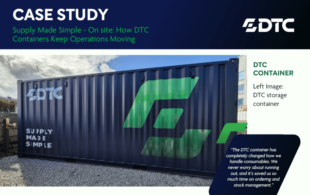 “The DTC container has completely changed how we handle consumables. We never worry about running out, and it’s saved us so much time on ordering and stock management.”