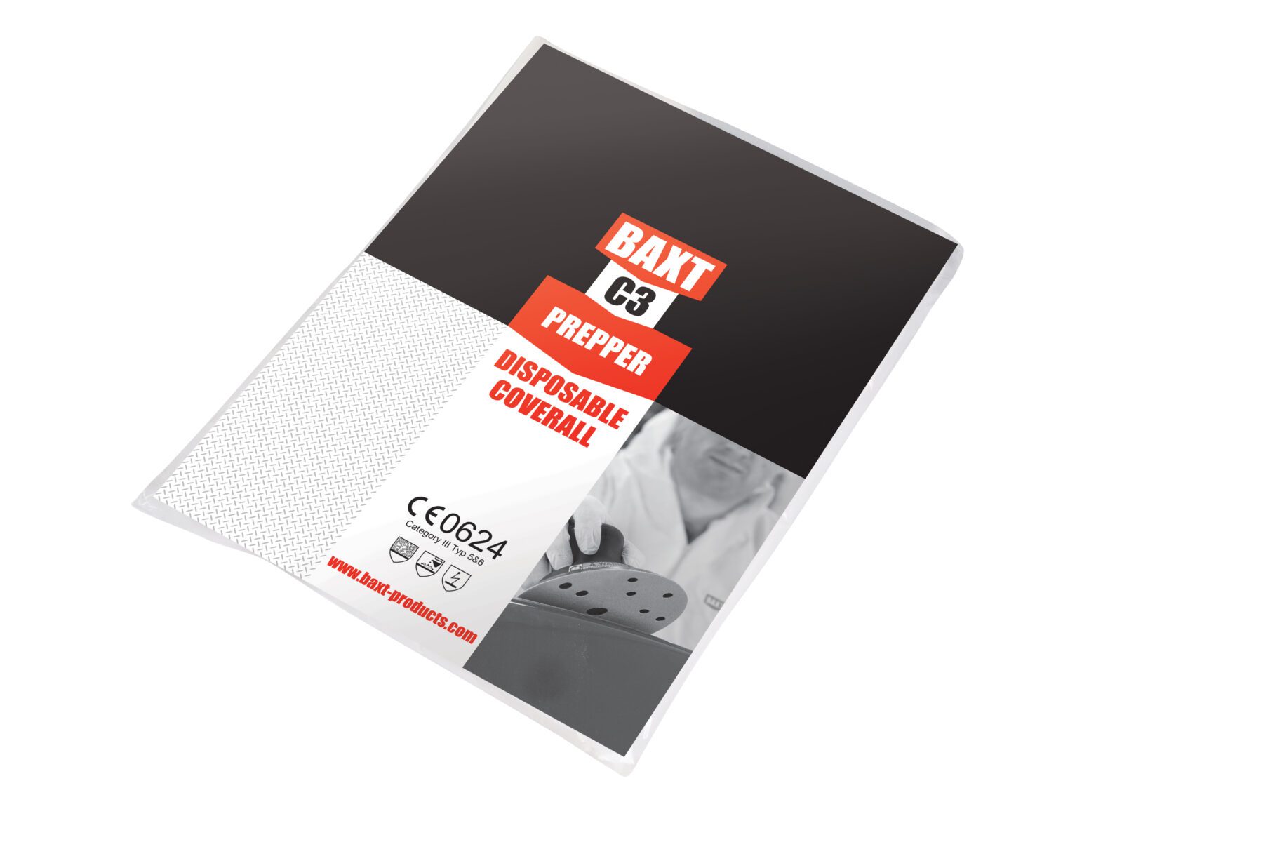 The BAXT C3 Disposable Coverall is a premium dust coverall suit that delivers maximum breathability and protection against dust, so is a perfect protection solution for those carrying out 'prepper' work. If you are looking for a high quality, affordable protection solution, then look no further than the great priced BAXT C3 Disposable Coverall, designed for workers carrying out prepping work - the material is type 5 and 6, so also splash proof.