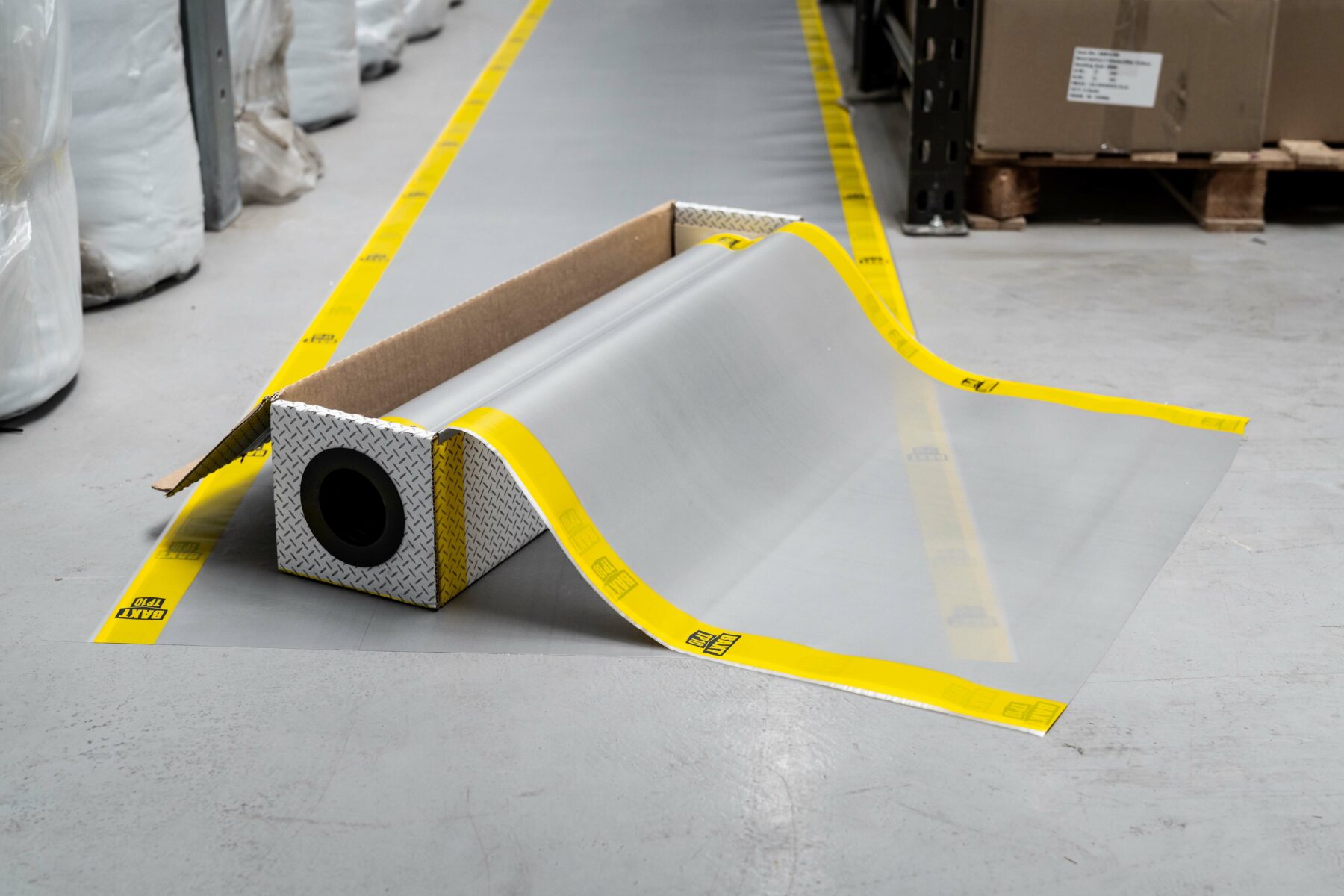 Designed to protect your Walkways and edged in highly visible yellow stripes, BAXT TP10 Walkway Protection is perfect for reducing cleaning times as well as creating a barrier to avoid excessive marking or damage to floors. Yellow edges clearly define the walkway for maximum safety.  Clean your high traffic areas in minutes by simply peeling off the old soiled top layer, to reveal a new clean and unmarked surface below.