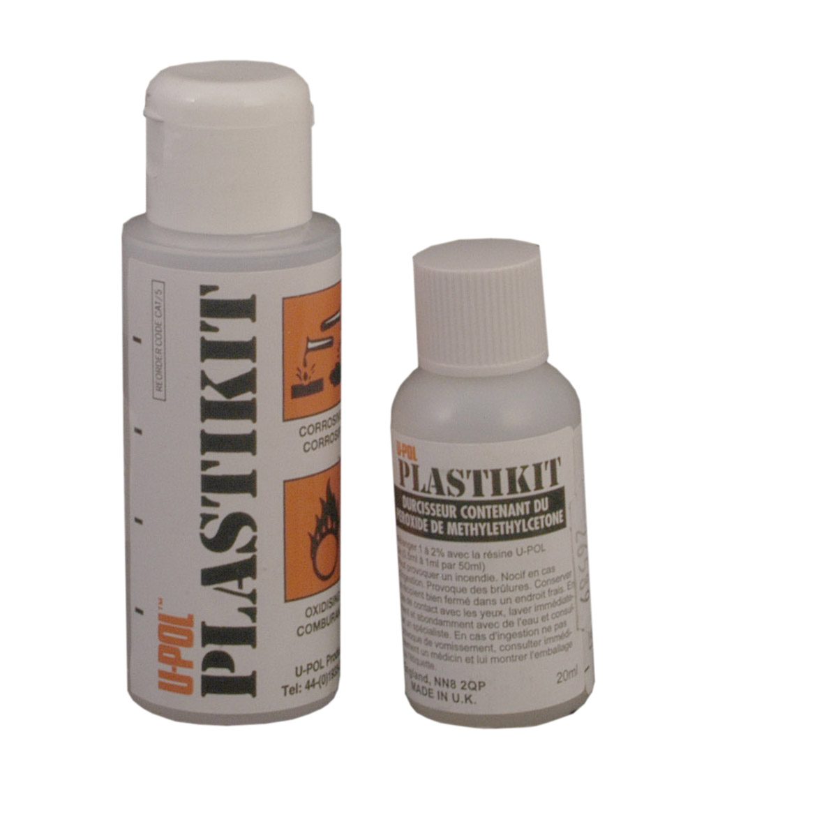 - Kit contains resin, MEKPO hardener, glass fibre, mixing cup and plastic gloves.