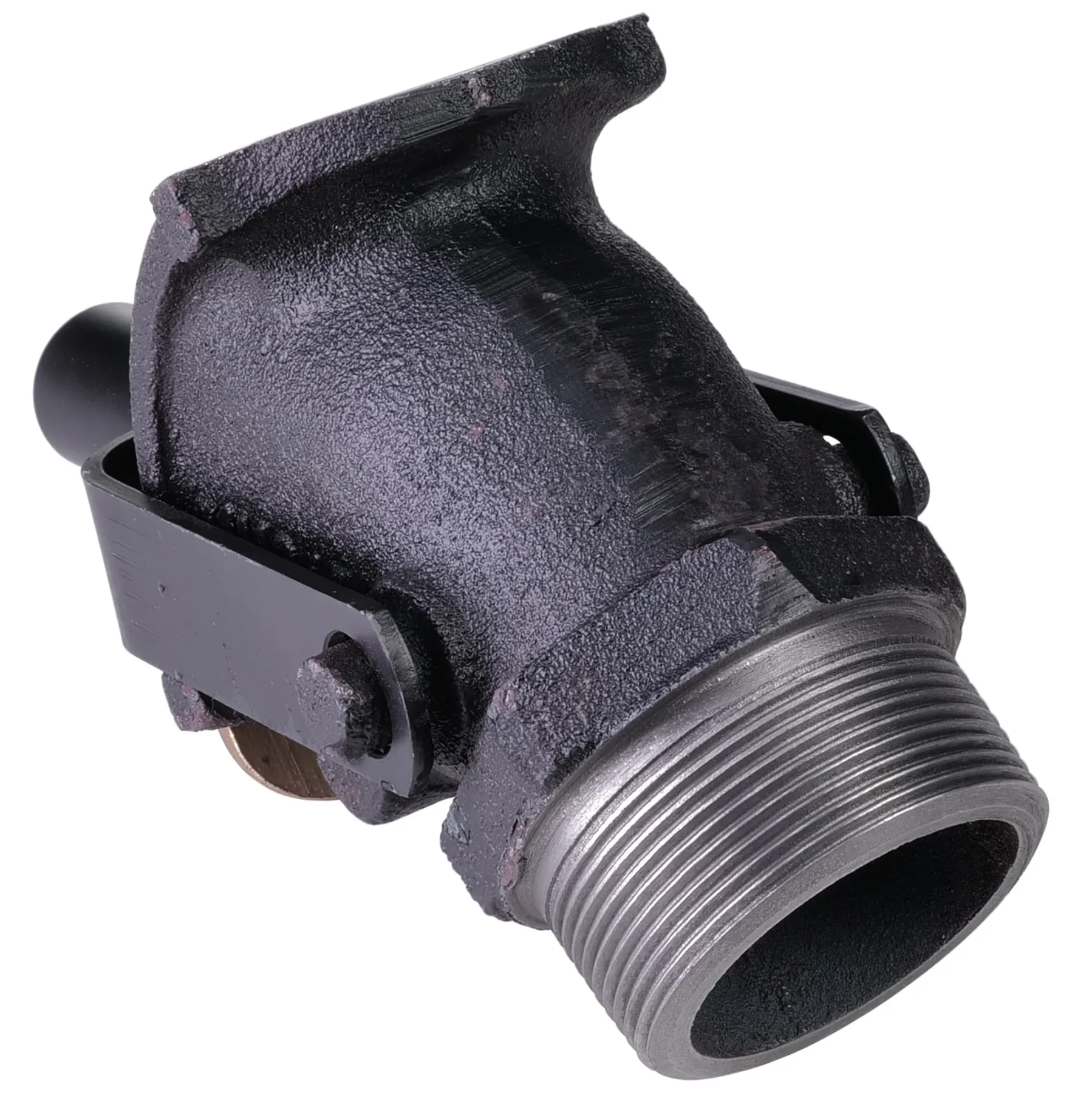Heavy duty cast iron drum tap, suitable for very viscous liquids and resins. Spring-loaded metal slide. 2" tapered pipe thread fits most 205L metal barrels.