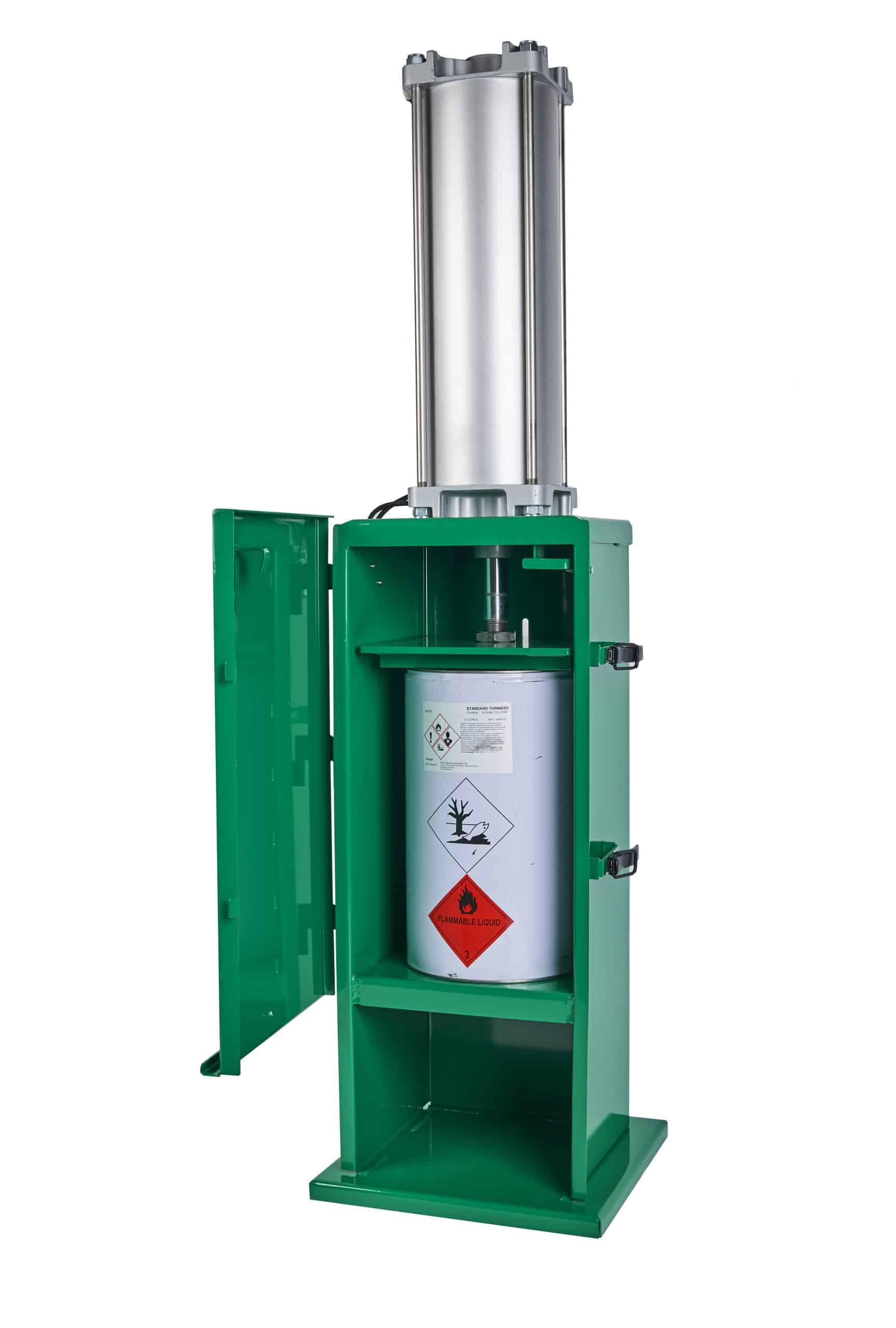 The 30L Unic Can Crusher will crush from 1ltr to 30ltr cans. The crusher is equipped with a double acting pneumatic cylinder with a force from 865kg to 2500kg at 7bar.  As a safety feature the door cannot be opened while crushing is in progress. N.B. This equipment has been specifically designed for crushing paint cans.
