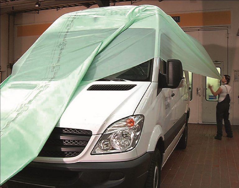 Water-resistant and tear-resistant the Wondermask Lite Plus Masking Film Green translucent green static film is ideal for smoothing water-based paints. Ideal for infrared drying. The transparency and texture of the film makes it very easy to cut to the exact size of the vehicle, even wet.